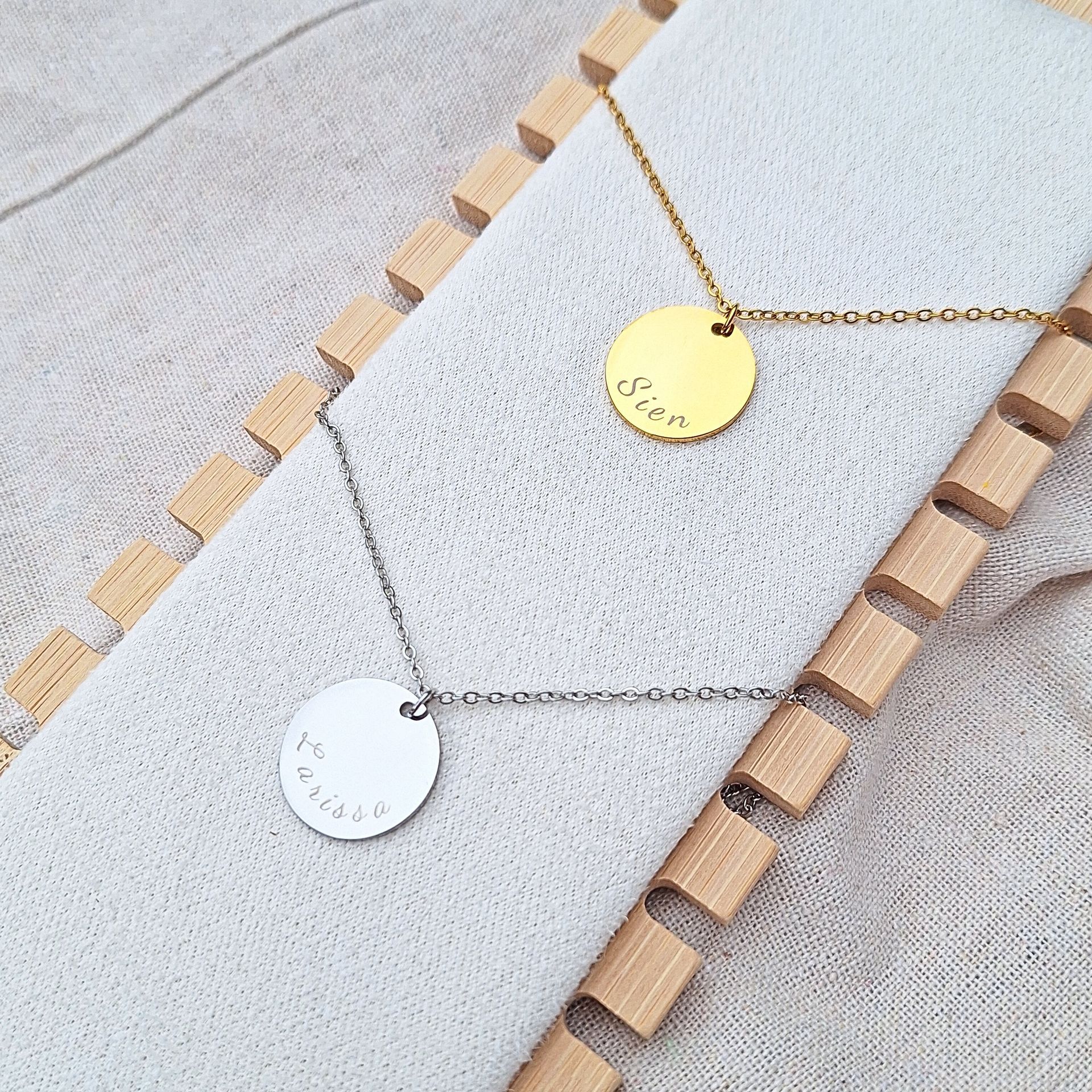Deze ketting met ronde bedel wordt speciaal voor jou gegraveerd met een naam, datum of korte quote. Zo heb je altijd een uniek sieraad dat een dierbare herinnering of betekenis dichtbij houdt.